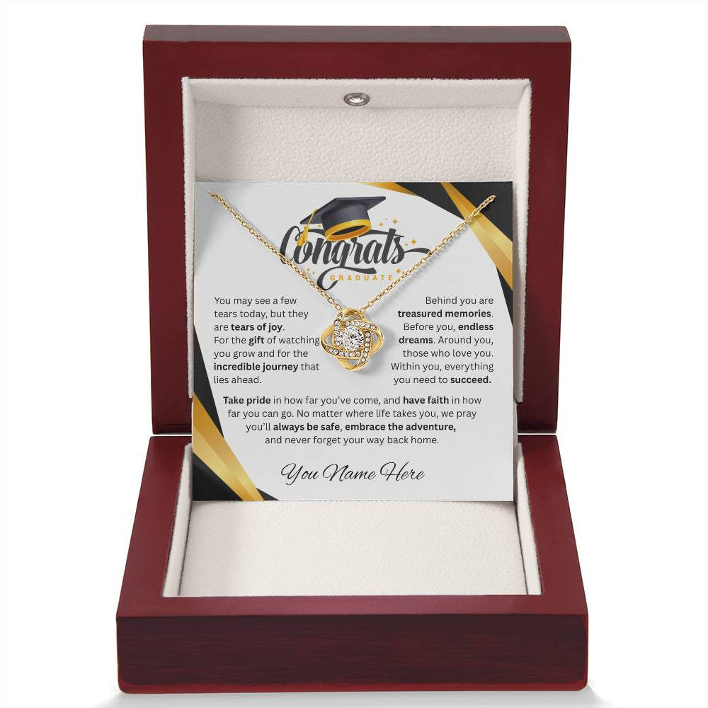 Celebrate their achievement with a gift as meaningful as their journey! This stunning Love Knot Necklace paired with a heartfelt graduation message card is the perfect way to show your pride and admiration for the graduate in your life.