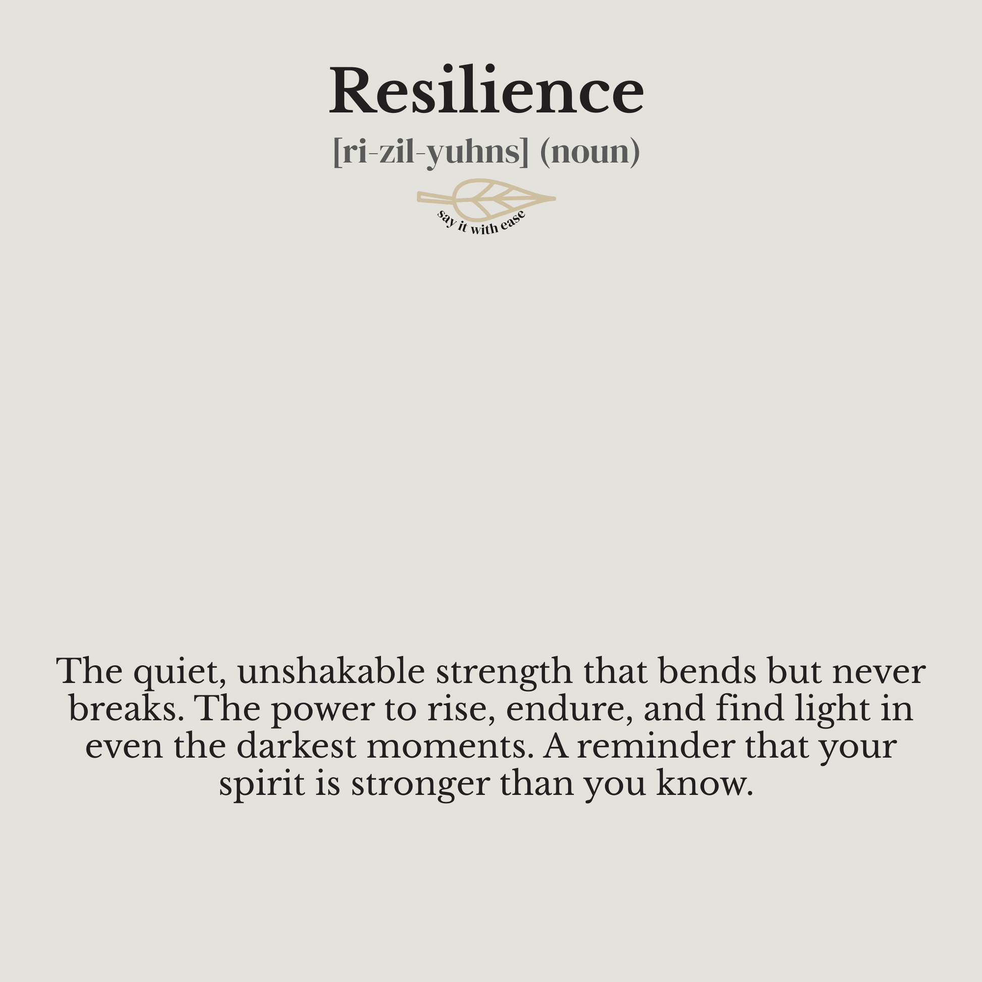 Resilience — The quiet, unshakable strength that bends without breaking. The ability to rise after setbacks, endure what feels impossible, and keep moving forward even when the path is unclear. A reminder that strength doesn’t always roar — sometimes it simply refuses to quit.