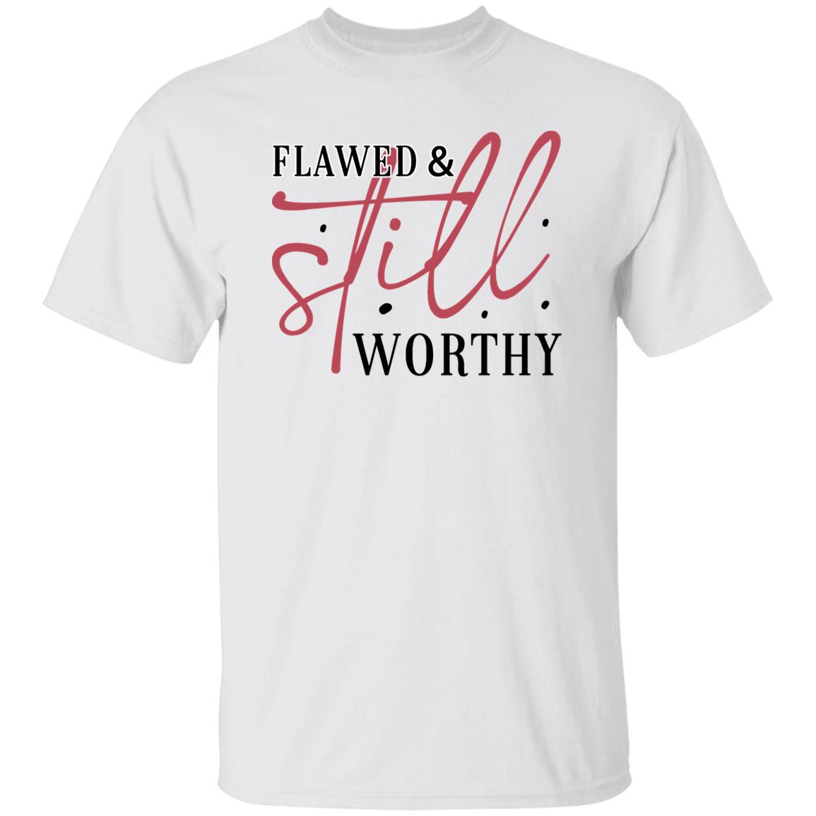 Embrace your journey with confidence and self-love in this empowering "Flawed & Still Worthy" tee. Crafted from ultra-soft, high-quality fabric, this shirt combines comfort with a powerful message of self-acceptance and resilience. The bold, uplifting text serves as a daily reminder that imperfections are part of what makes us beautifully unique and deserving of love and respect. Its classic fit and versatile design make it a perfect addition to any wardrobe, suitable for both casual and reflective moments. Available in a variety of sizes, this tee is a meaningful gift for yourself or anyone who needs a reminder of their inherent worth, flaws and all.