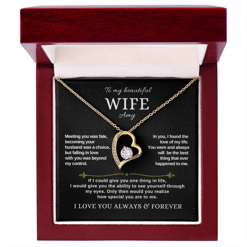 Surprise your wife with the stunning Forever Love Necklace, guaranteed to make her heart melt! This elegant piece features a radiant 6.5mm CZ crystal, beautifully framed by a polished heart pendant adorned with smaller sparkling crystals for extra brilliance. Expertly crafted in your choice of white gold or yellow gold finish, this timeless necklace is perfect for everyday wear and a lasting reminder of your love. Give her a gift that shines as bright as she does!