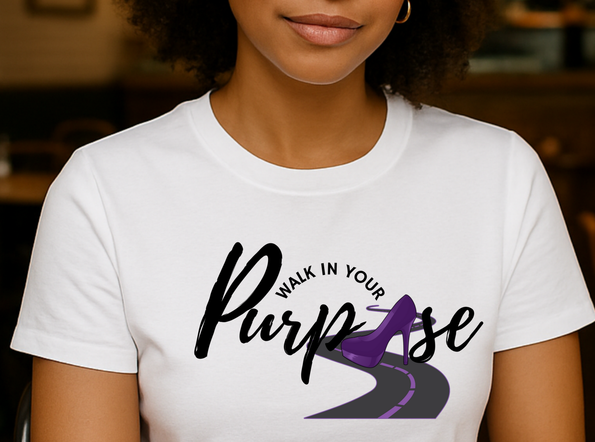 Every step you take holds meaning. Walk in Your Purpose is more than a statement—it’s a declaration of self-belief, resilience, and direction. The winding road symbolizes the unique journey only you can walk, while the bold purple heel stands as a reminder to move forward with confidence, grace, and intention.
