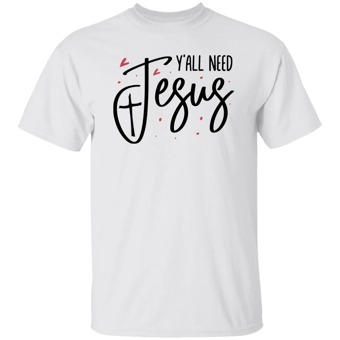Spread a message of hope and humor with this bold "Y'all Need Jesus" tee. Featuring a playful yet impactful statement, this shirt is crafted from soft, comfortable fabric that you'll want to wear all day. Its relaxed fit and eye-catching design make it perfect for casual outings or as a conversation starter. Whether you’re sharing a laugh with friends or simply expressing your faith, this tee combines style with a meaningful message. Available in a variety of sizes, it’s a great gift for anyone who enjoys blending faith with a touch of fun.